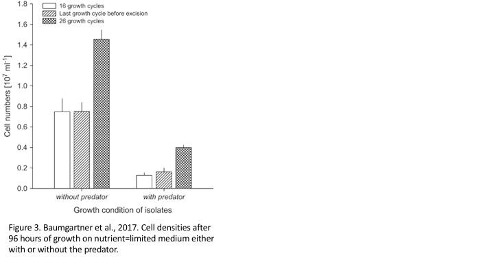 These three strains grew better compared to other strains that had undergone the same predator treatment, although they had shifted to growing as cell aggregates, which are also resistant to grazing. Additionally, when the three isolates were grown in another co-culture with predators, they did better than both the original ancestral strain and the strains evolved without predators. There were some drawbacks to the reduction in genome size, however, since they were not able to grow in the presence of one compound which they had lost the degradation pathway for.